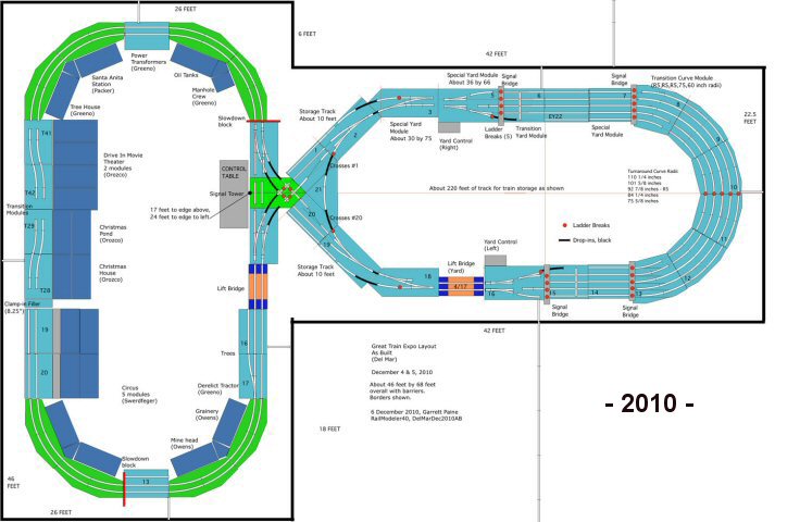 Longtime member Garry Paine works closely with track and scenery representatives of the club in designing layouts for particular train shows and special exhibits based upon the size of the structure, and allocated floor space in which we are going to display our railroad.